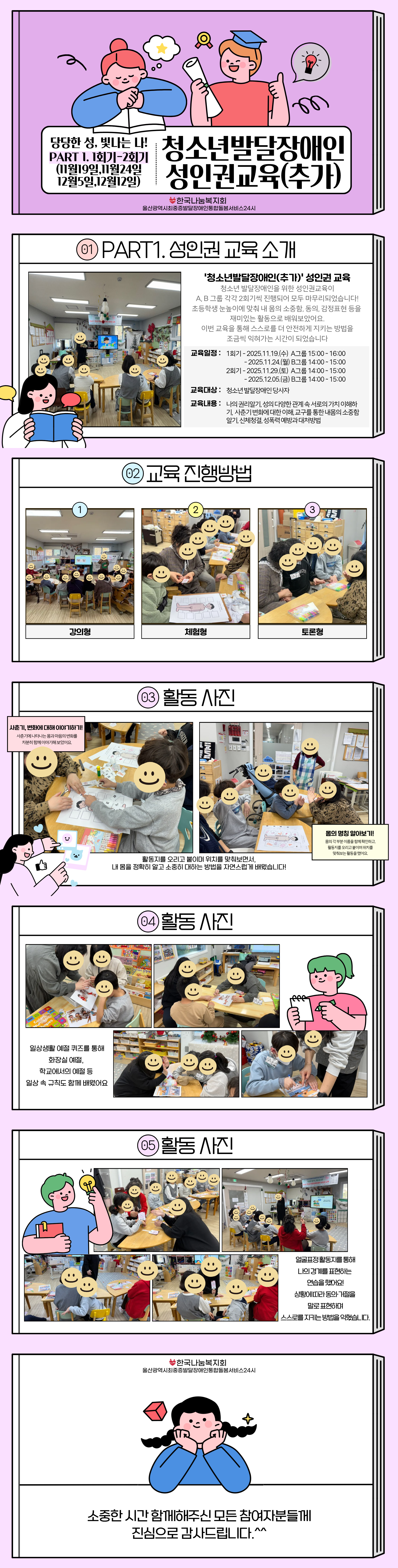 저희는 울산광역시의 위탁을 받아 2025년 성인권 교육 「당당한 성, 빛나는 나!」를 운영하고 있습니다.